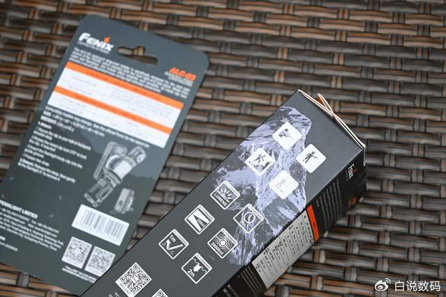 包装依旧延续了Fenix简洁而专业的户外风格。雪山之颠象征着严苛环境,亮面封绘突出产品特色。下方罗列的一排图标为主打卖点。可以看到最底处的3600和350字样,分别代表着其最高光通量和最远射程。而作为配件的ALC-03则采用了封塑窗的直观形式。
