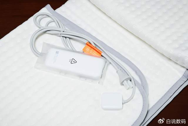 电热毯的面料材质为百分百聚酯纤维,可以看到表面的网络状透点,既舒适透气,又能释放温暖。记得以前用过的电热毯硬邦邦硌得慌,而米家这款则完全不会。它的毯体是不仅采用了拉绒亲肤面料,而且由支撑层和上下两层无纺布叠加复合而成,摸起来软乎乎的,贴肤睡也不扎人。躺上去几乎感觉不到线体存在,舒适度堪比厚绒毯。