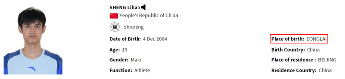 比如,2024年巴黎奥运会射击运动员盛李豪,当其他中国选手的出生地是广州、北京、青岛时,盛李豪的出生地为DONGLAI——东莱,既不是省也不是市——是江苏省张家港市杨舍镇东莱村的东莱(真就只差门牌号了)。