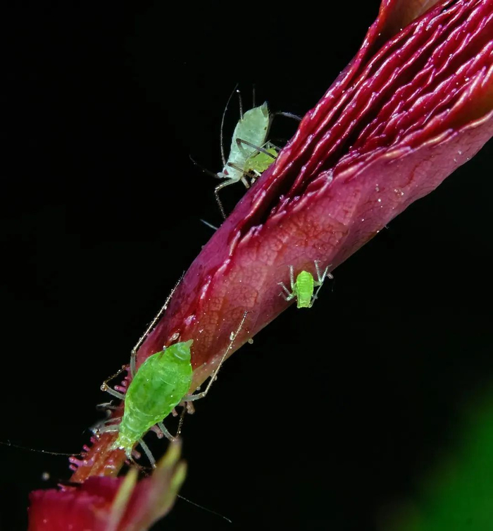 和蝉一样,蚜虫 Aphidoidea 同属于昆虫纲半翅目,是蚜总科的统称,共有 10 个科约 4400 种,主要分布在北半球温带地区和亚热带地区,是许多经济作物和树木的害虫。它们的繁殖能力极强,出生五天就能繁育后代。