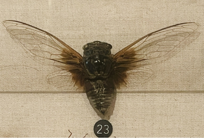 上海故事展区的黑蚱蝉 | 樱桃 摄它最为人所熟知的,就是在盛夏时节高居大树枝头,传出一声声的“嘶叫”。虽然它们酷爱大声喧哗,但随地嘘嘘这种不文明的事,之前倒还没怎么听说过。