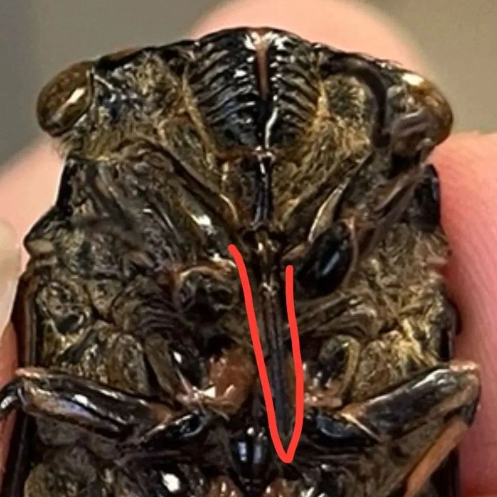 蚱蝉的口器 | 余一鸣 摄而大部分树木汁液的营养价值其实并不高,其中 95% 是水,即使蚱蝉喝饱一肚子树汁,里边的营养也不够用,所以“直肠子”的它们食量惊人,每天几乎都要“喝”掉自身体重约 300 倍的食物。