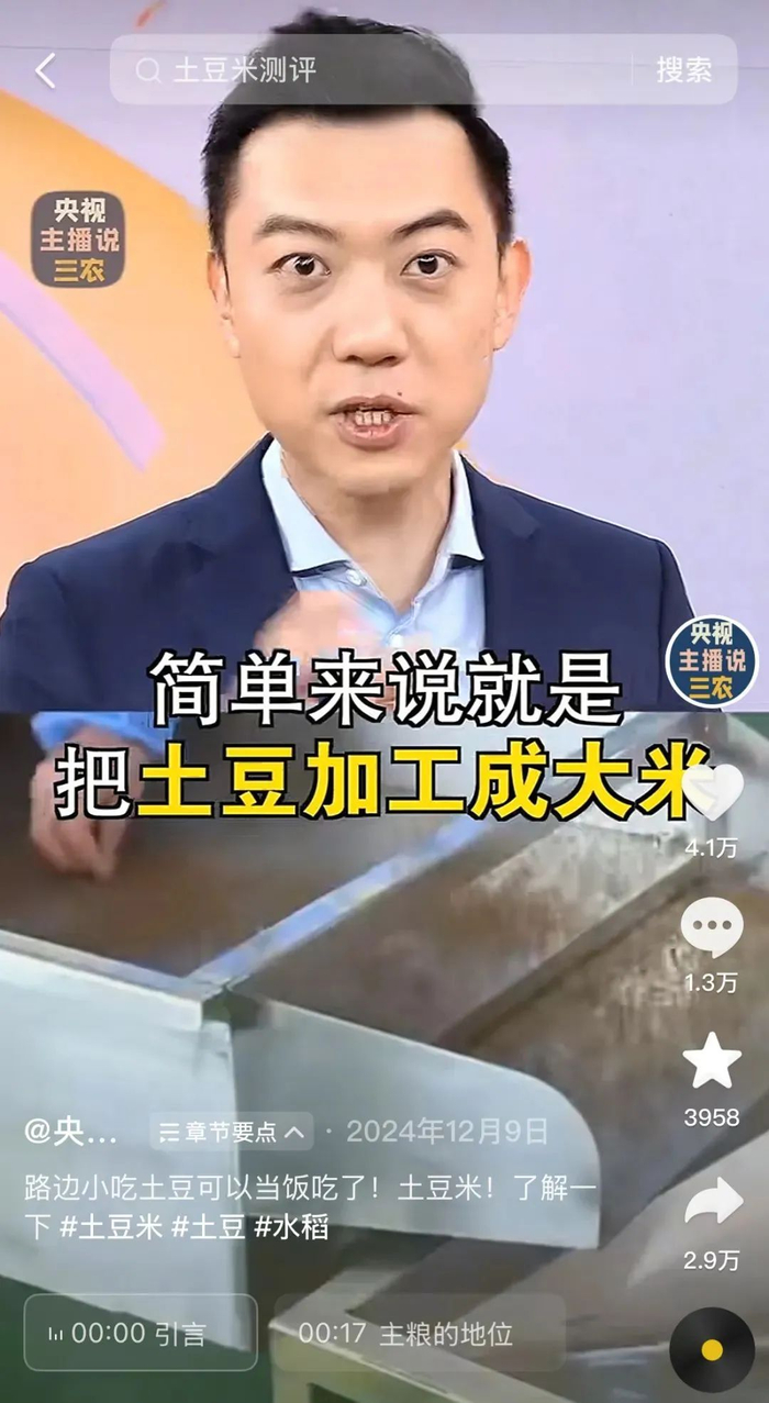 “新鲜的马铃薯做成干燥的大米!这是中国科学院院士整整耗时5年半才有的这项新技术突破!” 三农视频里,一个看起来可以颠覆食品科技界的突破,被推送到我的面前。“口感上既有大米的软糯感,还有土豆的香甜,真是活久见!”