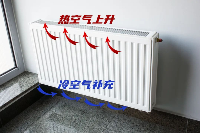 暖气片向外散发热量,是个自发过程,不需要人为干预:它的表面温度比室内空气高,能够加热旁边空气;热空气受热上升,远处的冷空气再补充过来,形成对流,让整个房间变暖。