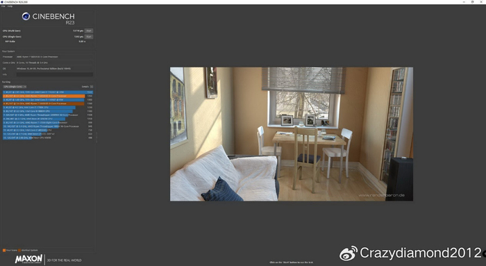 跑了Cinebench R23的测试,多核13233 pts,单核1380 pts。