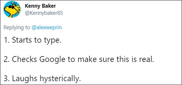 网友的第一反应是:“1.开始输入;2.搜了下确认这是真的;3.狂笑不止。”
