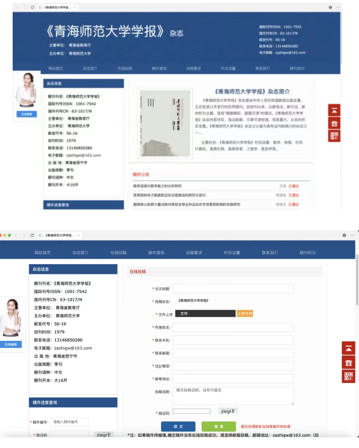 4.本刊现用投稿方式为腾云采编系统投稿,除此之外的均非本刊投稿方式。投稿需从编辑部首页https://qhsz.cbpt.cnki.net/portal 进入作者投稿系统https://qhsz.cbpt.cnki.net/EditorGN/index.aspx?t=1投稿,同时提供作者联系电话、电子邮件等信息。