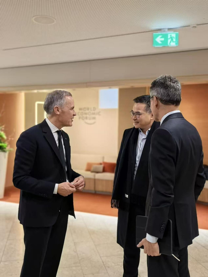 卡尼(左)与张雷于2026世界经济论坛再次会面交流“三巨头”能源矩阵遇到加拿大转型焦虑