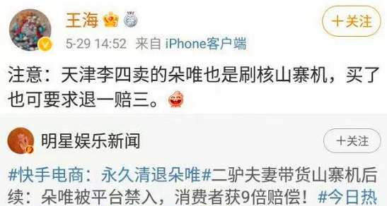5月23日,有数码博主曝光,在快手头部网红主播二驴夫妻的直播间买到了一台山寨朵唯手机,数码博主买手机居然被坑,这让他颜面荡然无存,羞愤难当,最终选择曝光自己的遭遇。