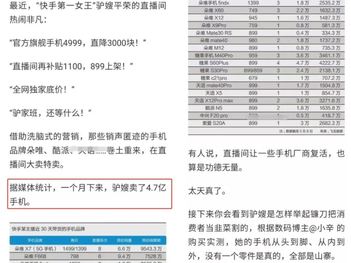 等待二驴夫妻的,除了封号整顿,更严重的或将面临牢狱之灾,另据最新线索,快手平台,带货山寨朵唯手机的头部主播,不止二驴夫妻一家,铤而走险、公然叫卖山寨背后的利益链,一度浮出水面……