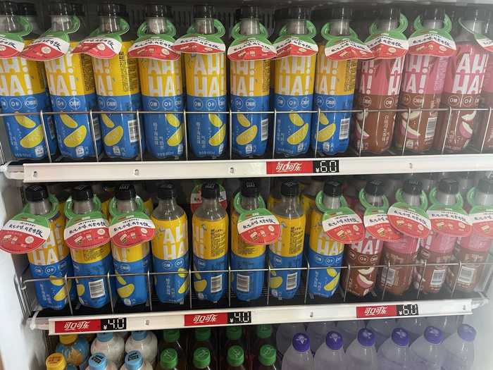 在发布会现场,维士数字饮食创始人魏强与可口可乐广东区域销售总经理陈建军共同宣布发布联名款AH-HA小宇宙气泡水饮料,该饮品包括白桃乌龙味和柚子海盐味两种口味,购买渠道除在深圳文和友-可口可乐时光馆外,也可在维士数字饮食微信小程序中购买尝鲜。同时,小程序中将会上架由维士与AH-HA小宇宙联名的AI套餐,套餐包括维士红、绿、白三色小盒饭+AH-HA小宇宙气泡水。