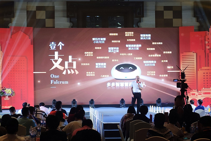 赖正福专题分享。佛山日报记者覃征鹏摄赖正福表示,一群有共同梦想、来自不同领域的人士,联合打造了多对多物联平台,以“物模型”为基础,将多样性、多品牌、多协议的智能设备全天候互通,通过多多智慧管家机器人,通过智慧家庭、智慧康养、地产新营销、小区/社区改造及产业赋能解决方案,高频粘性主动服务物联网用户,引领物联网商业发展。同时形成合资公司、合伙人、城市合伙人等多种模式,加速完成百城千盘战略,共建共享共发展。