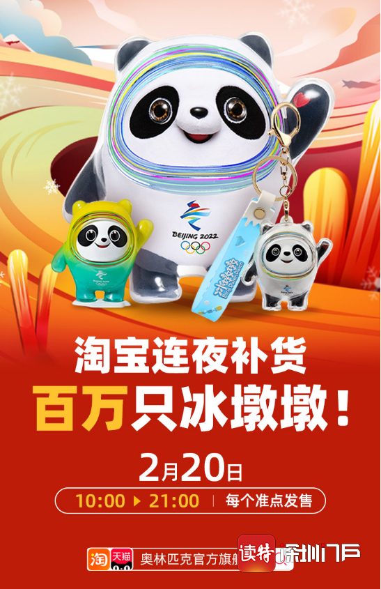 记者了解到,20日上午10点至晚上9点,天猫奥林匹克官方旗舰店将在每个整点,轮番发售平均十万只冰墩墩,相当于1天集中补货一百万只冰墩墩,这也是冰墩墩补货力度最大的一次。