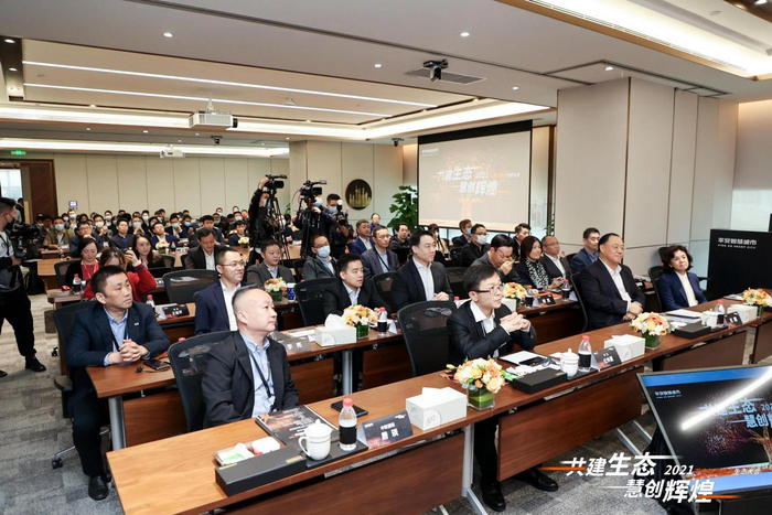 读特客户端·深圳新闻网2021年11月23日讯(记者 贺靛婧)11月23日,以“共建生态,慧创辉煌”为主题的平安智慧城市生态大会在深圳前海自贸大厦成功举办。中国平安集团党委副书记、智慧城市发展委员会常务副主任兼科技委员会副主任杜鹏与华为企业BG全球政府业务部副总裁杜仲夏,特发集团党委委员、副总裁俞磊,中软国际高级副总裁兼互联网ITS集团CEO居琰,平安智慧城市联席总经理高孟轩,以及平安智慧城市副总经理何实等领导嘉宾共同出席本次大会。大会采用线上、线下相结合的形式,群贤毕至,来自全国各地的企业代表通过平安知鸟直播系统远程参会,与深圳会议现场的生态伙伴齐聚一堂,共计110家生态合作伙伴共同探讨数字化生态构建的智慧城市实践与未来。