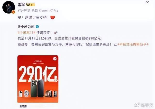 一是小米双11以290亿元销售额圆满收官,二是前DeepSeek研究员罗福莉官宣加入小米。