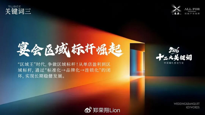 随着消费需求升级与产业模式创新,中国婚礼宴会产业正迈入高质量发展新阶段。近日,《结婚产业观察》依据产业前沿洞察、标杆企业调研,系统形成了《年度12大关键词》。