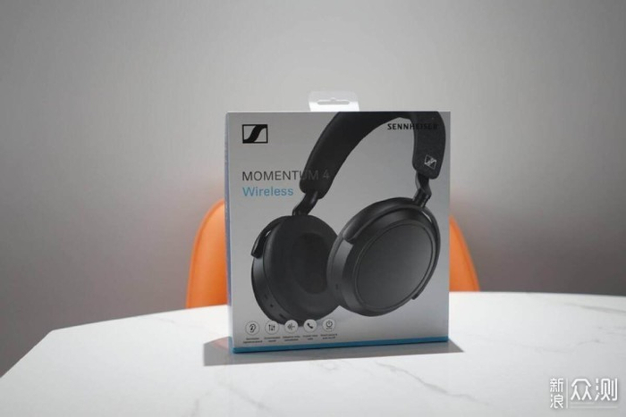 森海MOMENTUM 4包装显得非常有质感,正面是耳机的外观图和特征介绍,左上角是经典的LOGO,整体布局合理方便用户第一时间了解产品。