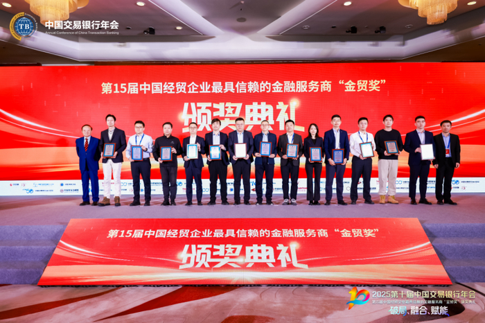 2025年12月12日,2025第十届中国交易银行年会暨第15届中国经贸企业最具信赖的金融服务商“金贸奖”颁奖典礼在北京隆重举行,会议现场近150人观礼了本次颁奖典礼。