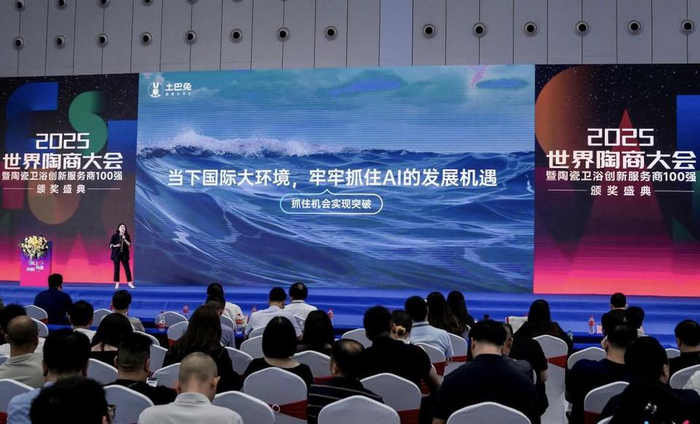 4月18日,在佛山举办的2025世界陶商大会暨陶瓷卫浴创新服务商100强发布会上,土巴兔联合创始人谢树英以“AI人工智能”为演讲主题,同参会嘉宾分享数字技术为装修服务带来的新一轮升级与革命。