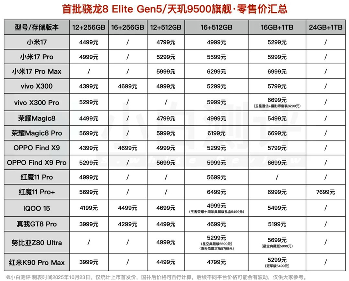 最近一个月多家手机厂商发布了搭载骁龙8 Elite Gen5或天玑9500的新旗舰手机,我们看到只有红魔一家提供24GB+1TB这个大内存大存储的SKU,究竟是什么原因呢?