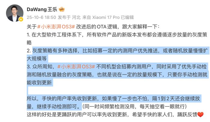 另外就是小米17 Pro系列这边了,今年小米17 Pro和小米17 Pro Max两款新机采用了背屏设计,官方陆续上新了不少玩法,现据最新消息,又双叒有新功能了。