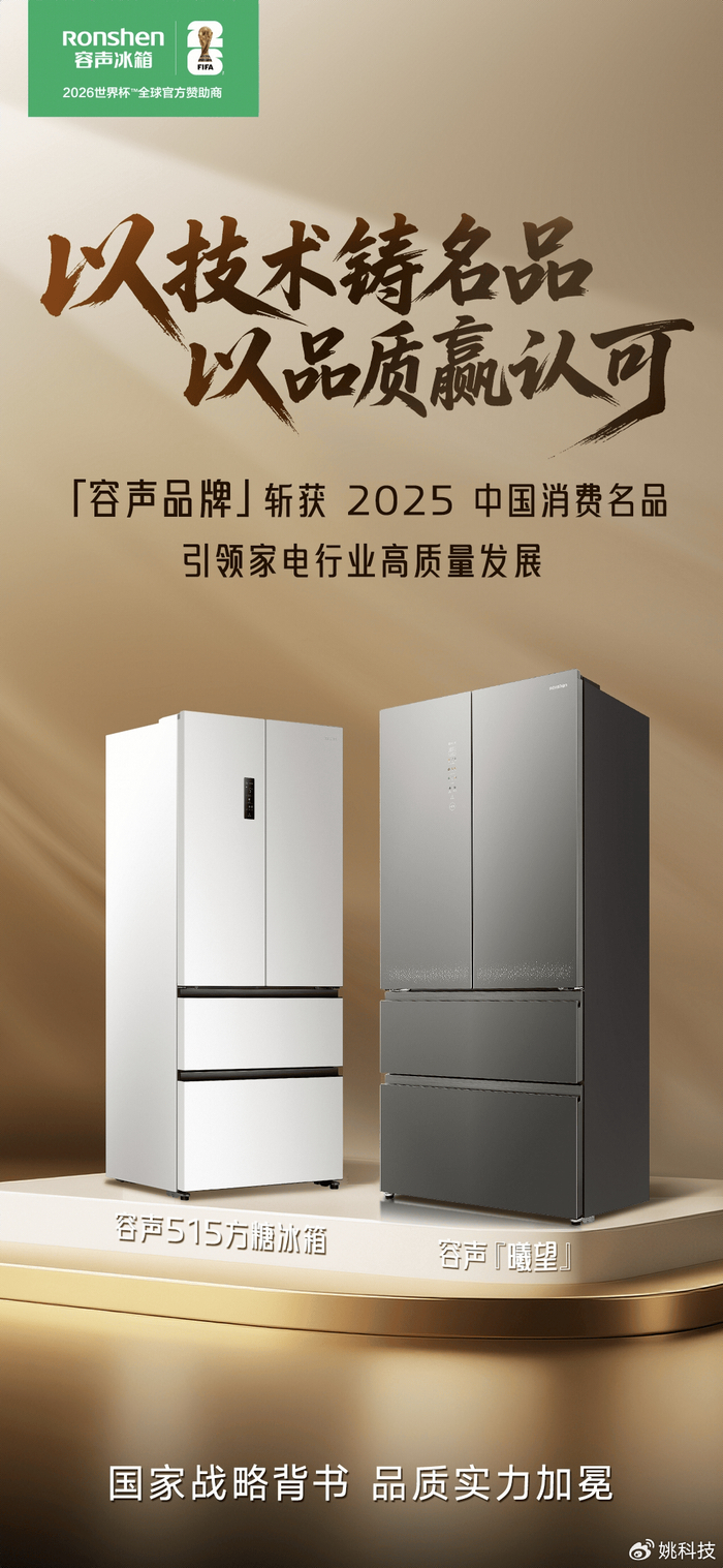 日前,工业和信息化部正式公布了2025年度中国消费名品名单,深耕冰箱领域四十余年的容声冰箱成功入选,这份荣誉不仅是对其产品品质与品牌实力的官方认证,更印证了其以用户为中心的发展理念与行业引领价值。