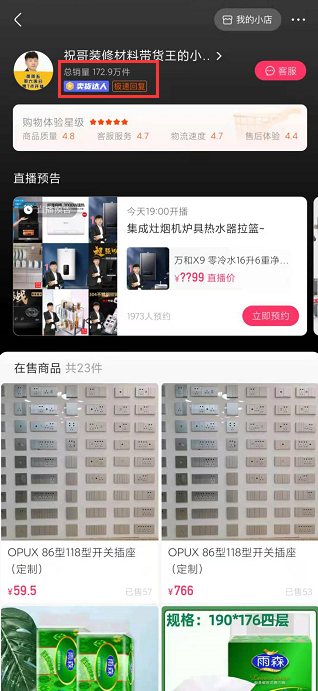 截至今日,祝哥不仅在快手上获得“卖货达人”称号,商品总销量更是达到172.9万件。