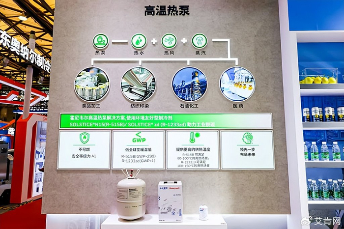 在工业热泵领域,2023年11月推出的共沸、安全无毒、不可燃的第四代环境友好型氢氟烯烃(HFOs)混合制冷剂Solstice® N15(R515B)表现出色。李宝刚介绍:“Solstice® N15(R515B)能满足80-100℃的工业高温热泵需求,在这个温度范围内相比传统制热方式能效更高,且全球变暖潜能值(GWP)为299,相较于传统制冷剂R134a(GWP=1300)降低了约77%。”