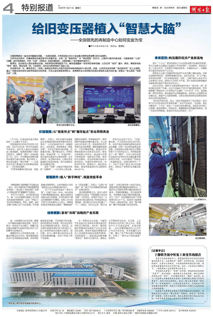 “我们的终极目标,是让‘退役再制造优先于购买新品’成为电力行业的普遍共识和首选决策。”李先巧总结道,“这条路,是在为衡阳的‘十五五’锻造一个扎实的绿色增长极,更是在为中国工业探索一条资源集约、环境友好、智慧赋能的高质量发展路径。每一次成功的再制造,都是向未来迈出的坚实一步。”