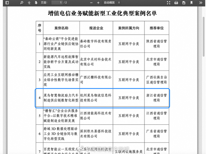 近日,工业和信息化部信息通信管理局公布了13个《增值电信业务赋能新型工业化典型案例》,百度、阿里云、中国移动、中国联通和菜鸟等公司的项目入选。菜鸟入选的项目是基于AI与自动化技术为某汽车零部件制造企业打造的“黑灯工厂”智慧物流系统,成为制造业数智化转型的标杆案例。