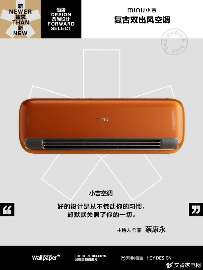 今年10月,MINIJ小吉新品复古双出风空调正式上市,近日又将「趋势风尚设计」奖收入囊中,引发了业界对其背景的新一轮关注——空调行业又有新玩家?