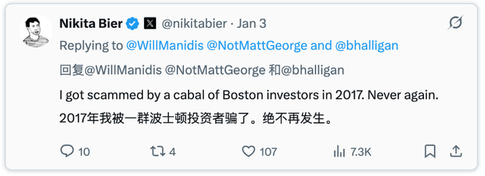 “我在2017年被波士顿的投资人帮派诈骗了。他们用围猎估值、强迫签署抽屉协议、利用圈层信息差进行敲诈……”