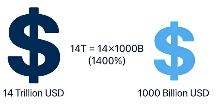 14万亿与1万亿,这是两个数量级的差距。