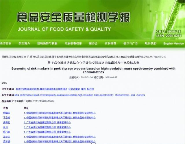 袁记云饺不仅将数字化融入供应链鲜度管理,还通过产学研合作模式将“新鲜”从主观判断转化为客观标准,从“经验驱动”迈向“科技驱动”。此前,袁记云饺所属的广东省袁记食品集团有限公司联合中国检科院大湾区院发表产学研论文,提出了一种快速、精准评估猪肉新鲜度的技术方案,为破解食品行业长期面临的肉类鲜度检测难题提供了科学依据,相关研究成果也将直接应用于企业原材料采购、储藏及质控环节,保障食品安全。