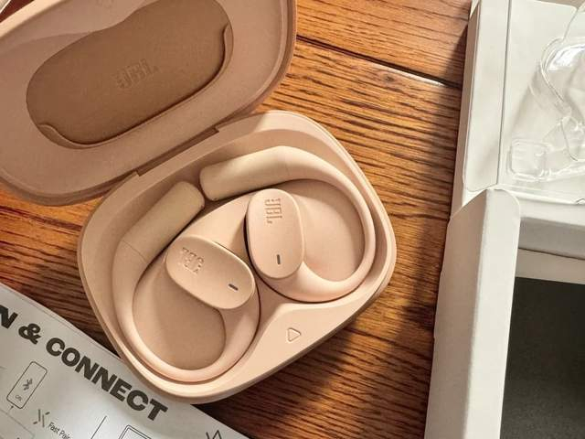 JBL这款耳机的佩戴感我也很满意,单只 9.5 克虽然不算特别轻,但戴在耳朵上没什么负重感。而且耳机天鹅颈耳挂设计很贴心,能轻松弯出贴合耳朵的弧度,一挂就能稳住,不用反复调整位置,加回了一点佩戴分。