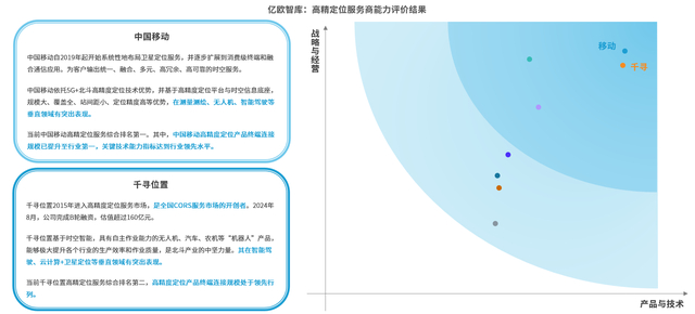 通过案头搜索等方式验证,中国移动与千寻位置是当前高精定位服务市场的领导者。中国移动 2019 年起布局卫星定位服务,依托 5G + 北斗技术优势,其高精定位产品竞争力居行业第一,关键技术达领先水平;千寻位置 2015 年进入该市场,是全国 CORS 服务开创者,2024 年估值超 150 亿元,在无人机等领域表现突出,高精度产品竞争力处于领先行列。
