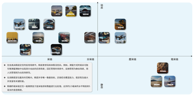 图中涵盖无人机、智慧公交、智能农机等场景对精度的需求。