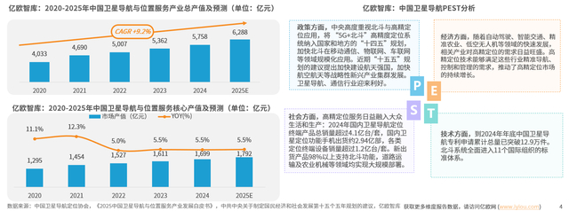 中国卫星导航与位置服务产业总产值预计将持续增长,预计2025年末达到6288亿元,年复合增长率约9.2%。核心产值的持续增长反映了市场对高精度定位服务需求的扩大。
