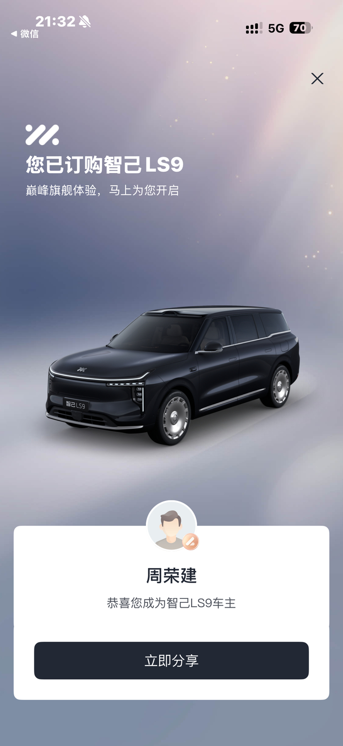 恭喜自己成为5000分之一[收到]#智己LS9上市25分钟大定破5000台##上汽旗舰智己LS9震撼上市32.28万起##上汽旗舰智己LS9全系皆Ultra#