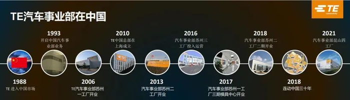 TE汽车事业部在中国30余年发展历程(图片来源:TE Connectivity)