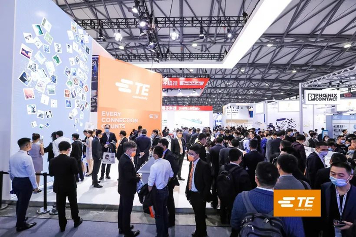 2021年慕尼黑上海电子展期间TE展台现场交流盛况(图片来源:TE Connectivity)
