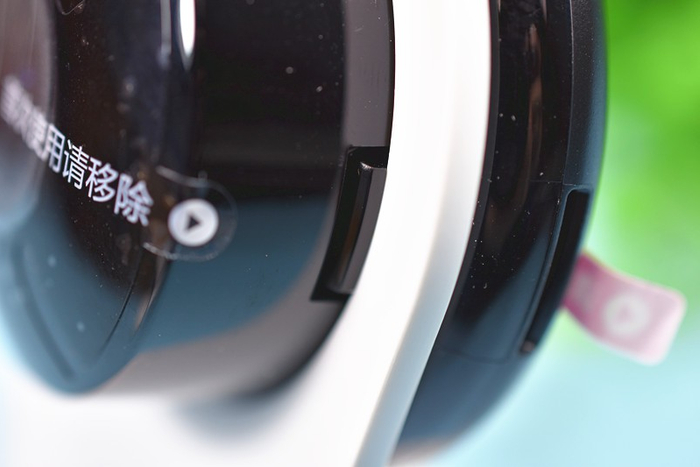与光鲜亮丽的正面不同,小蚁1080P版智能摄像机背部色调要暗淡许多,主要是因为小蚁1080P版智能摄像机的摄像头前脸部分采用了亮光喷漆处理,而摄像头部分采用了类似磨砂工艺的处理方式。虽然小蚁1080P版智能摄像机的摄像头前脸要比背部耐看许多,但由于工艺处理不同,前脸较背部来说更加容易刮花,这一点用户需在使用中注意。