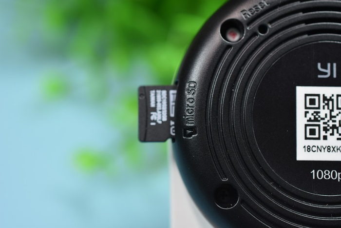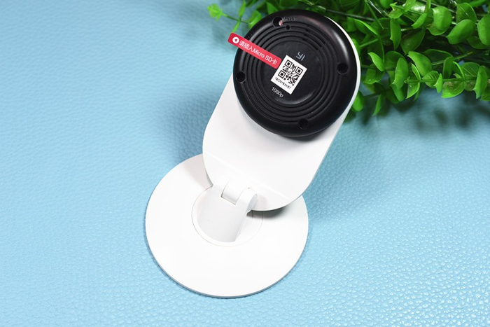 静距离观察小蚁1080P版智能摄像机的背部,正中央是一枚二维码,在初次使用手机APP连接小蚁1080P版智能摄像机时,可以通过手机扫描背部二维码的方式,迅速连接小蚁1080P版智能摄像机。除了二维码外,背部还有一枚扬声器和一个RESET(重置)键,如果需要重置小蚁,RESET键是很有用处的一个功能键,也是小蚁唯一一个功能键。