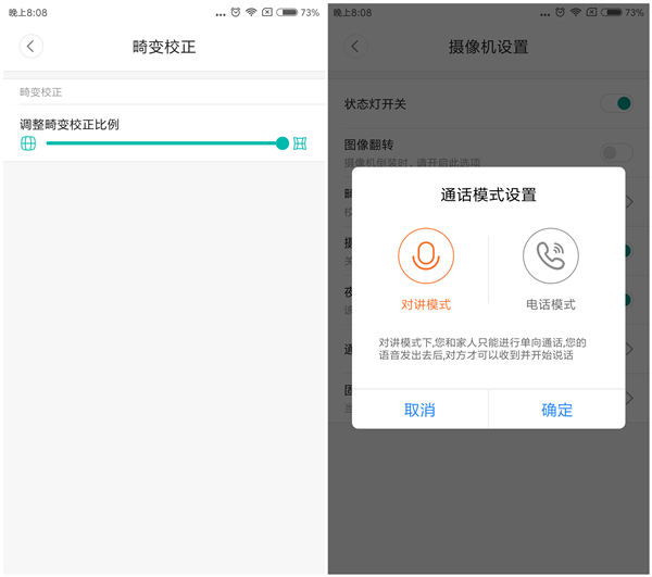 此外,小蚁1080P版智能摄像机还支持LDC画面畸变矫正和双向语音通话功能。小蚁使用的是广角镜头,如果没有畸变矫正技术,显示的画面会出现类似鱼眼效果的画面变形,会令用户的肉眼产不适感;而双向语音通话功能可以实现监测画面与手机的实时互动,并且支持对讲/通话两种互动模式,此外,小蚁还对麦克风与扬声器进行了重新调试,让声音还原更佳自然。
