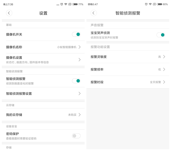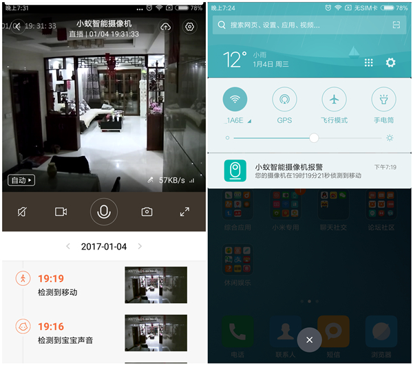 作为升级的一大亮点,小蚁1080P版智能摄像机加入了看娃的本领——宝宝哭声监测,这为有娃的家庭提供了不少便利,只要开启了这个功能,当宝宝的房间发生响声时,小蚁会自动识别声音的波长,并识别是否是宝宝的哭声,如果是宝宝的哭声系统马上会通过APP/系统推送或是微信的方式向父母手机推送通知。