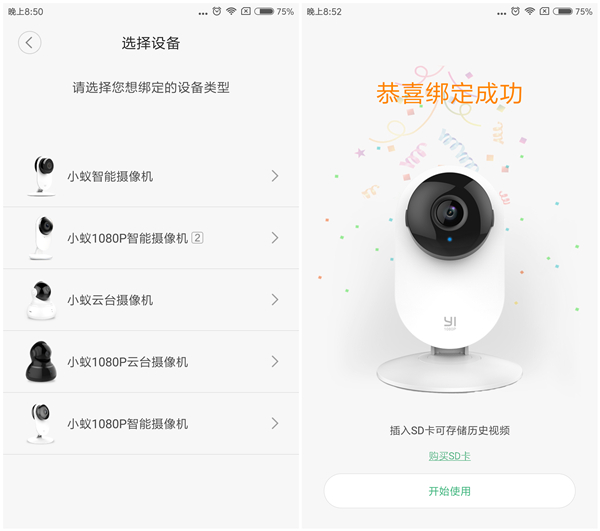 小蚁1080P版智能摄像机需要配合小蚁摄像机APP共同使用,用户可以选择使用小蚁账号或是小米账号登陆。登陆完成后,用户可以选择通过WIFI链接或者直接扫码摄像头背部二维码的方式进行连接,无论是哪一种链接方式,连接时间基本控制在3分钟左右,还是相当快的。