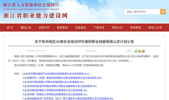 根据《浙江省技能人才评价管理服务中心关于实行社会培训评价组织职业技能等级认定计划公告制的通知》文件要求,7月27日,浙江省人社厅公布了首批40家试点机构,阿里巴巴认证作为其中之一,负责组织实施“电子商务师”网商、跨境电商两个方向的职业技能等级认证工作。
