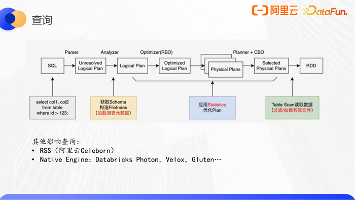 其中与数据湖相关的有三点:元数据加载、优化plan、Table Scan。