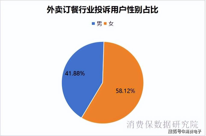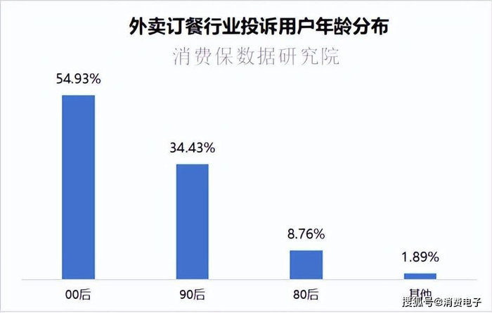 在外卖订餐投诉用户性别分布上,女性投诉占比 58.12%,高于男性的 41.88%。年龄分布中,00 后投诉占比达 54.93%,成为投诉主力;90 后投诉占比 34.43%,也是重要投诉群体;80 后投诉占比 8.76%,其他年龄占比 1.89%。