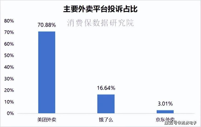 数据显示,2024年1月1日至 2025年8月10日,“消费保”平台共接到外卖订餐相关投诉69,208件,累计涉诉金额超2,207万元,有效投诉解决率为43.16%。在外卖订餐平台投诉占比方面,美团外卖占据投诉榜首,投诉占比高达 70.88% ;饿了么以 16.64% 的投诉占比位居第二;京东外卖投诉占比为 3.01%。